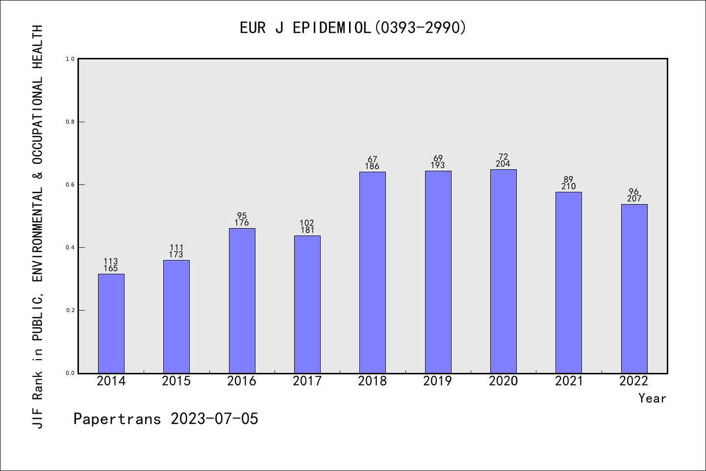 EUROPEAN JOURNAL OF EPIDEMIOLOGY拒稿率学科排名@SCIE公共环境和职业健康
