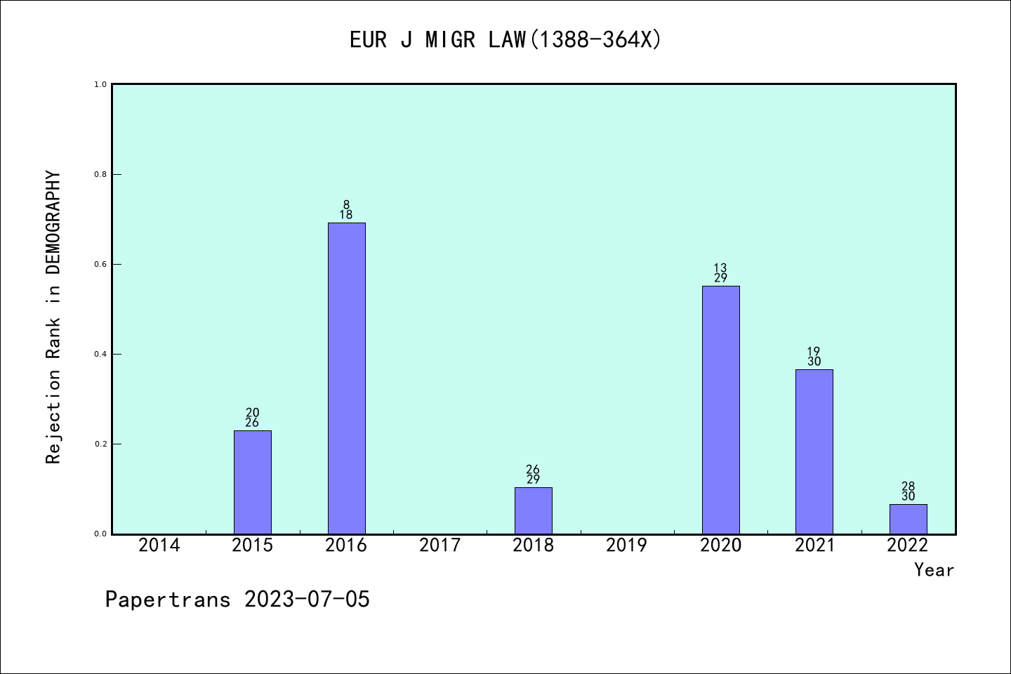 EUROPEAN JOURNAL OF MIGRATION AND LAW拒稿率学科排名@SSCI人口学