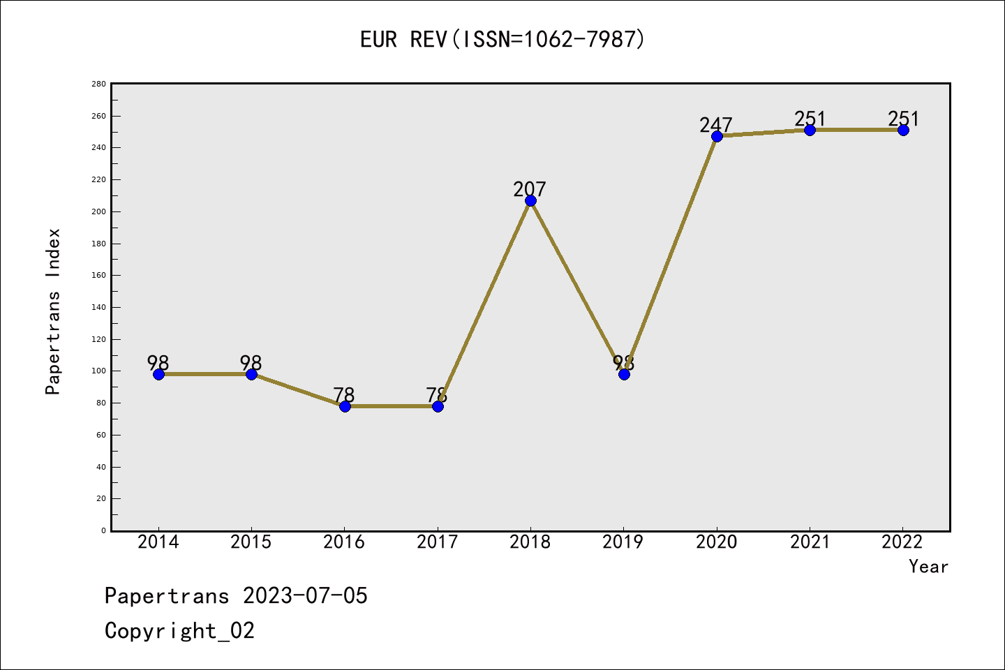 SSCI期刊European Review历年派博系数(Pindex)