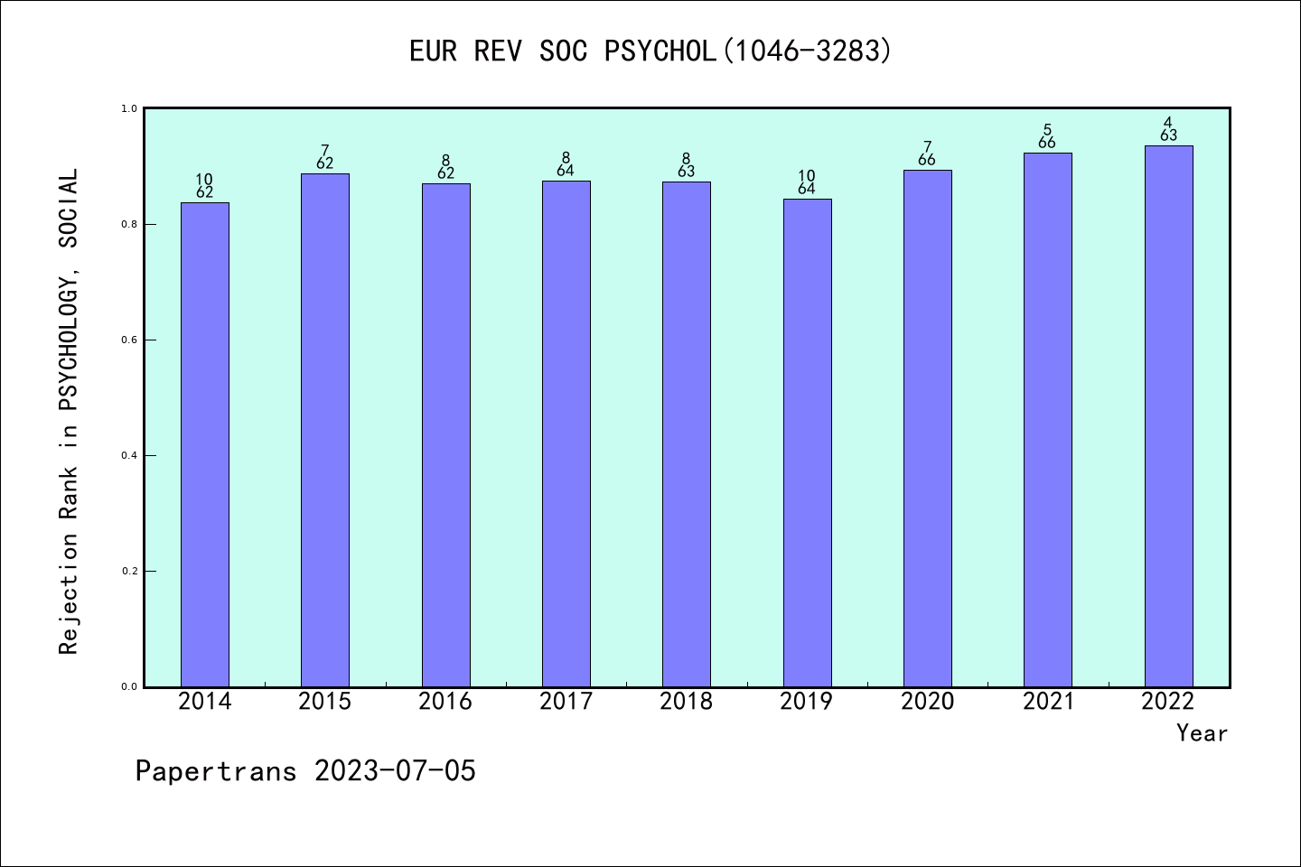 SSCI期刊European Review of Social Psychology历年拒稿占比