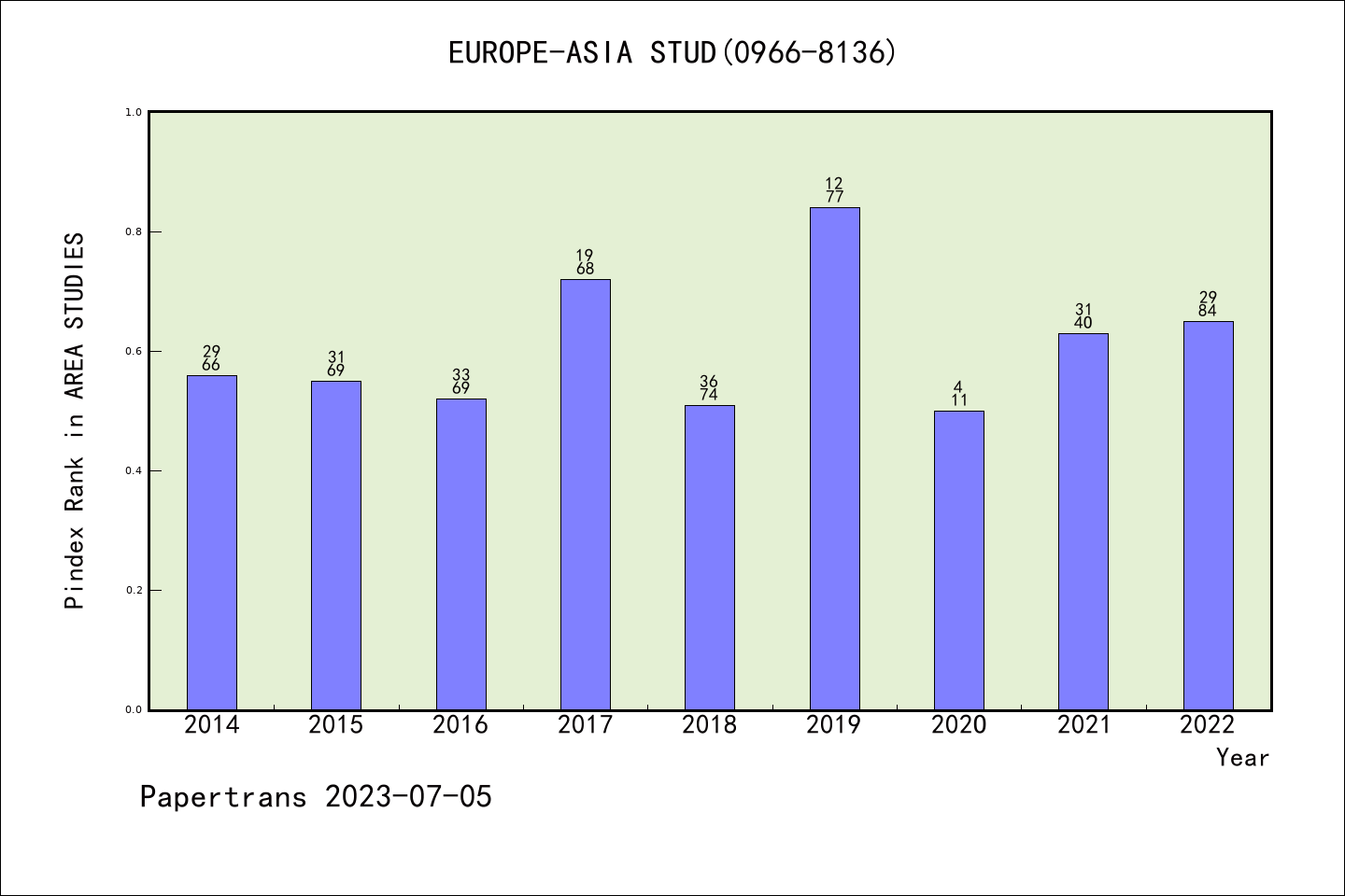 EUROPE-ASIA STUDIES派博系数(Pindex)学科排名@SSCI区域研究