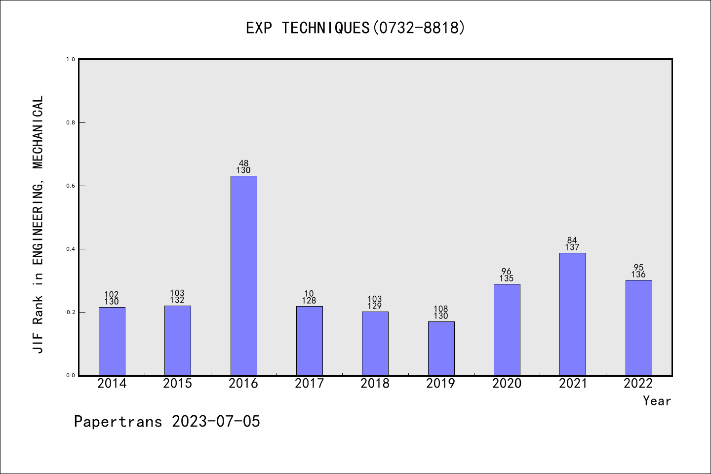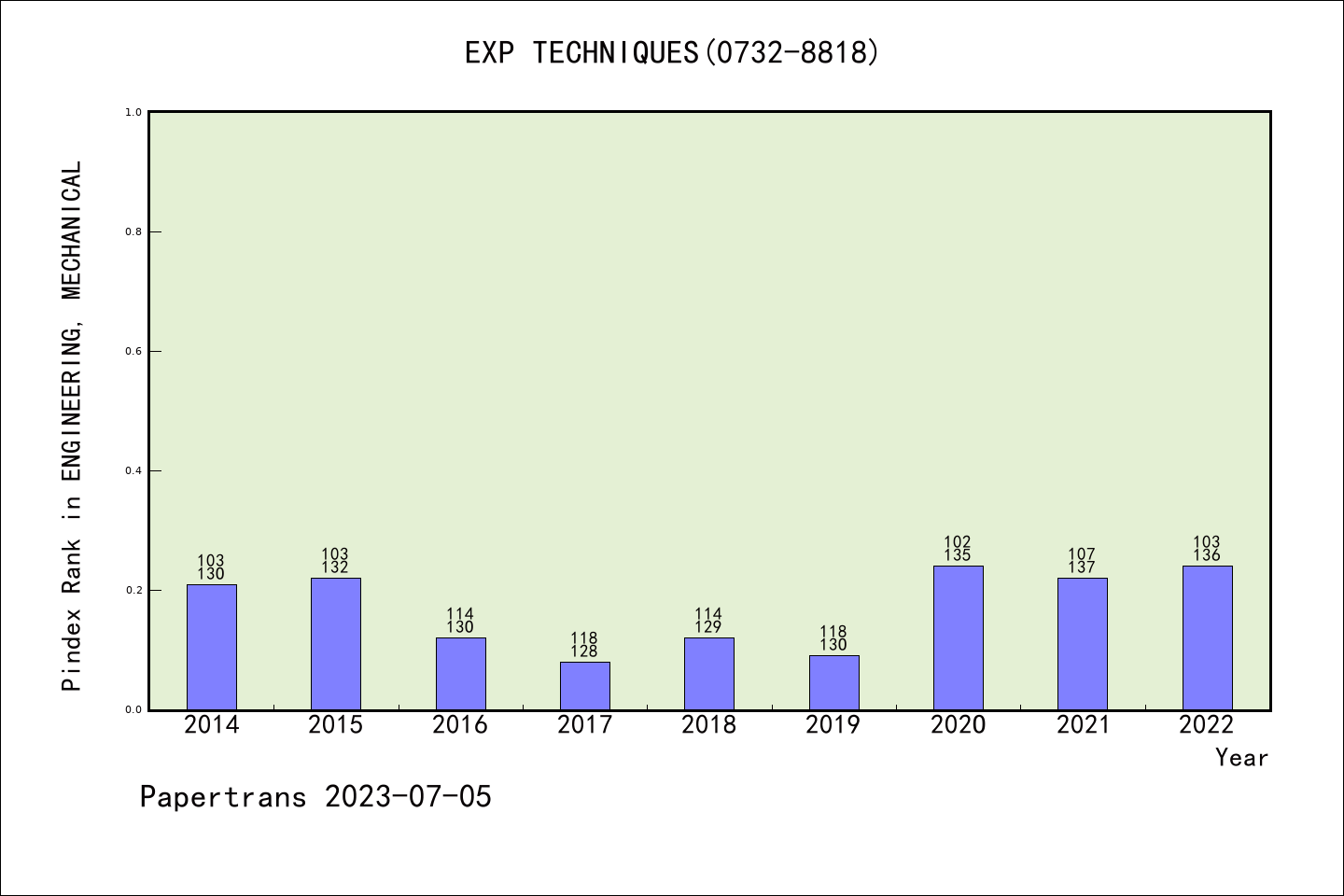 SCIE期刊EXPERIMENTAL TECHNIQUES历年派博系数(Pindex)