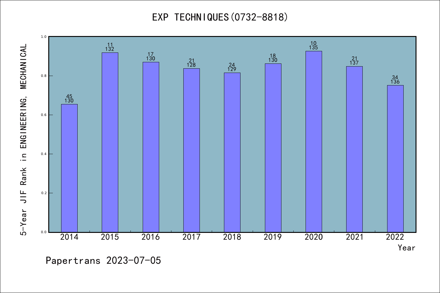 EXPERIMENTAL TECHNIQUES派博系数(Pindex)学科排名@SCIE机械工程