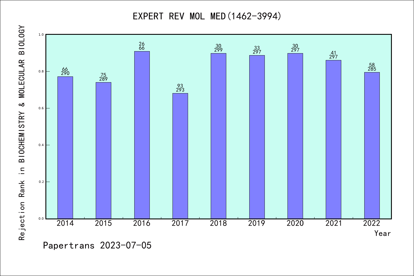 EXPERT REVIEWS IN MOLECULAR MEDICINE拒稿率学科排名@SCIE生物化学与分子生物学