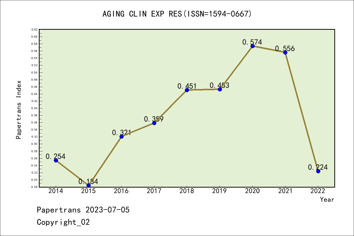 SCIE期刊AGING CLINICAL AND EXPERIMENTAL RESEARCH历年派博系数(Pindex)