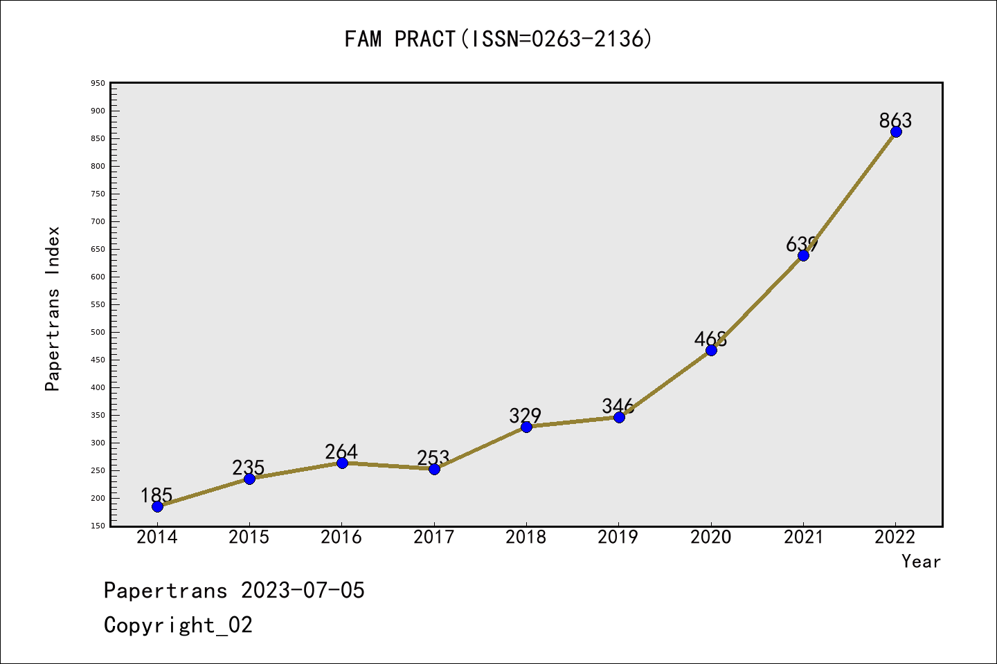 SCIE期刊FAMILY PRACTICE历年派博系数(Pindex)