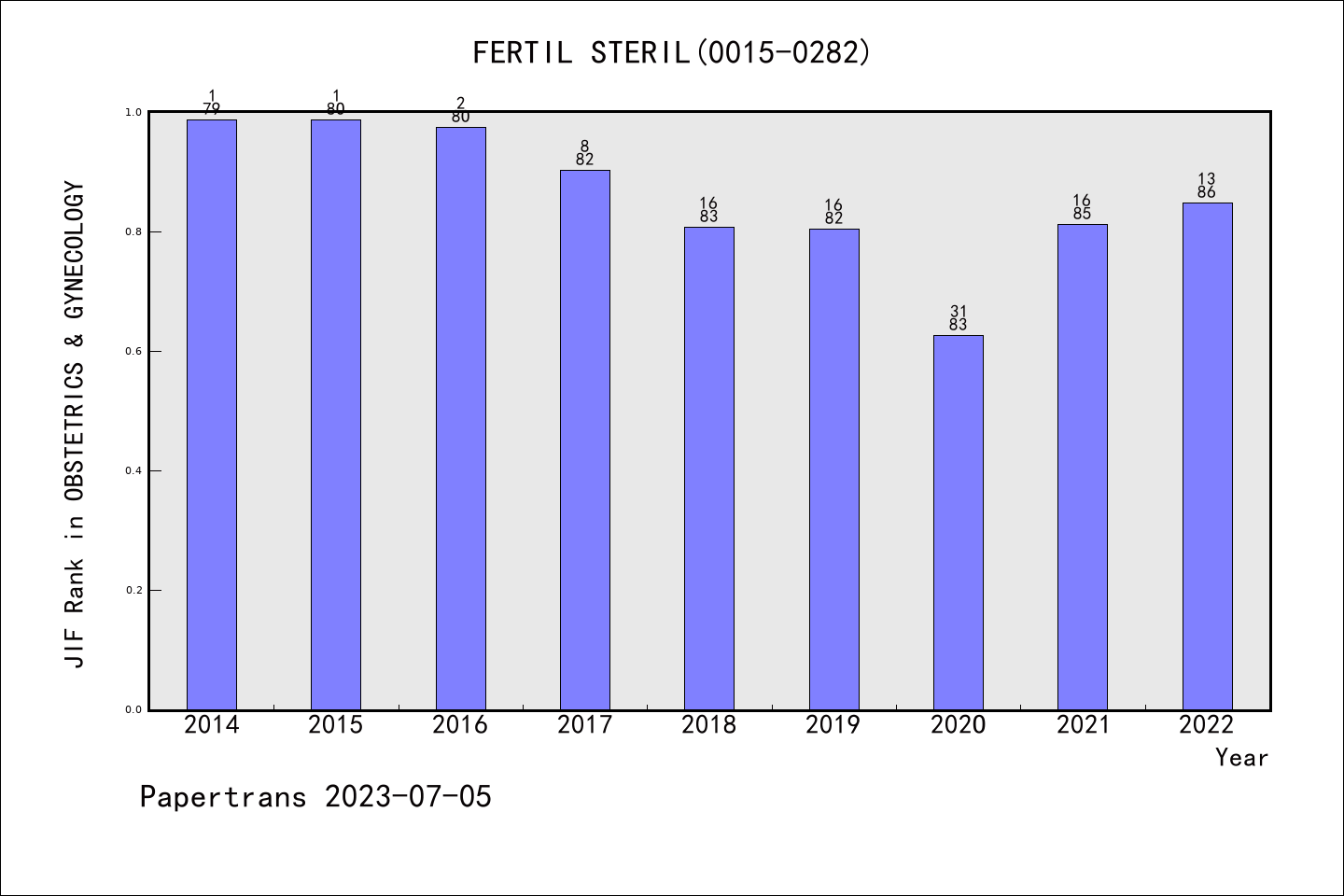 FERTIL STERIL图表质量排名@SCIE妇产科