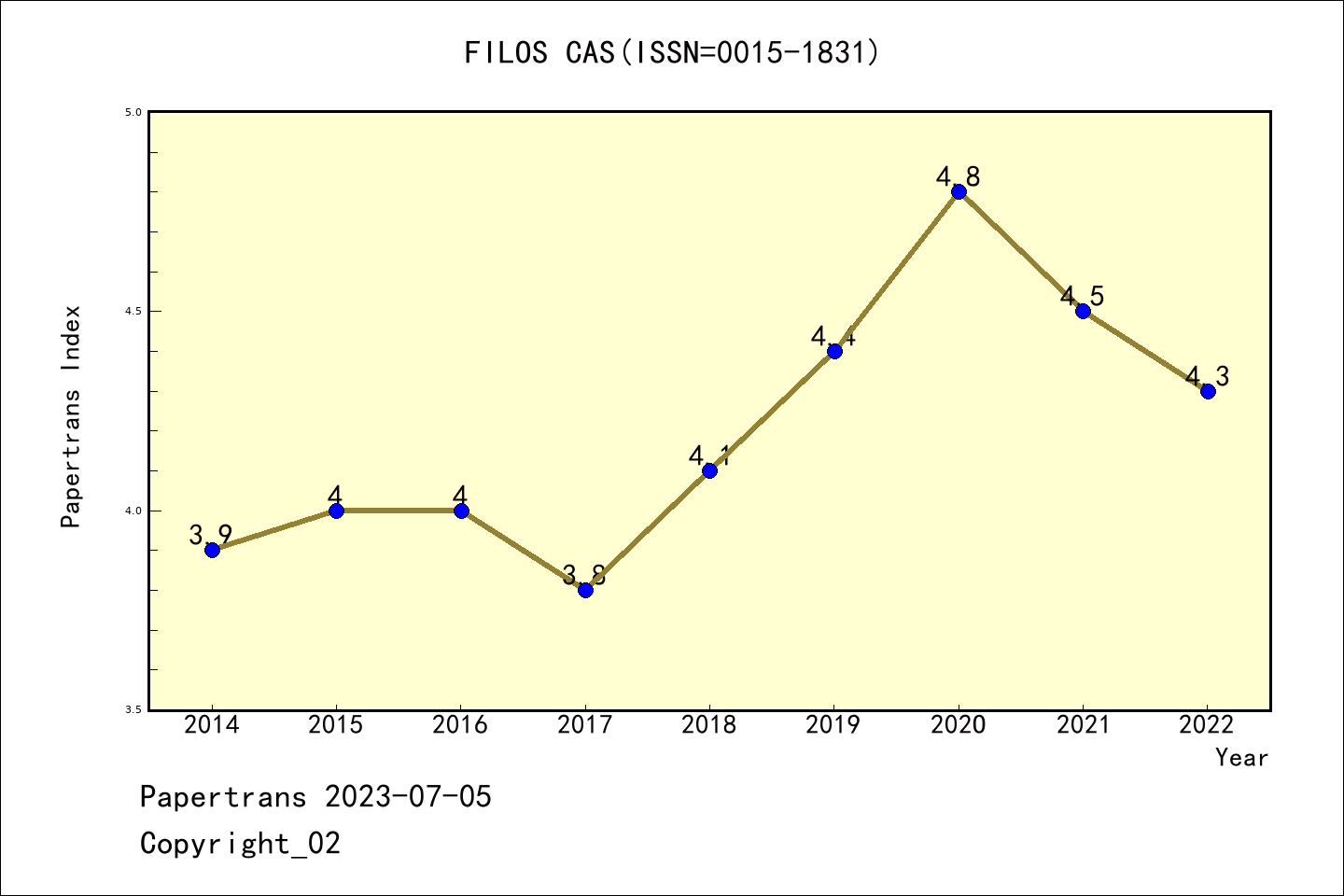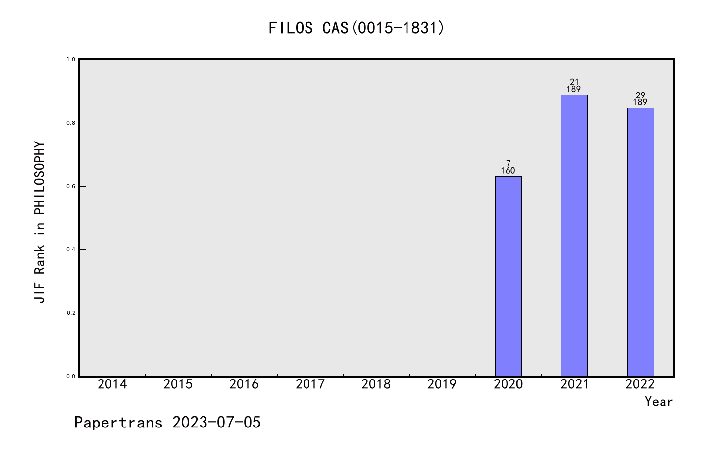 AHCI期刊FILOSOFICKY CASOPIS历年派博系数(Pindex)