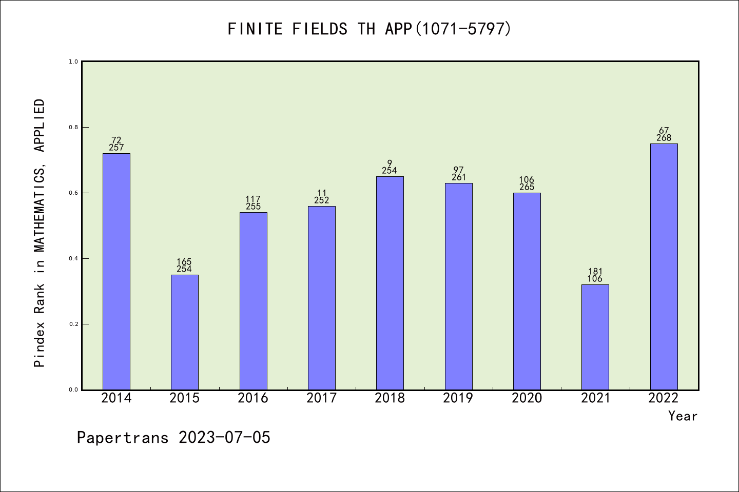 SCIE期刊FINITE FIELDS AND THEIR APPLICATIONS历年派博系数(Pindex)
