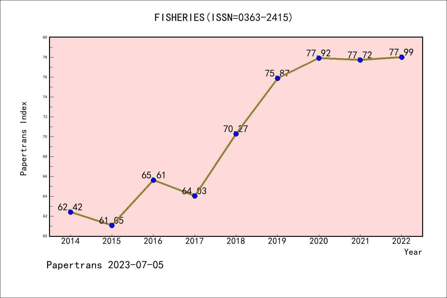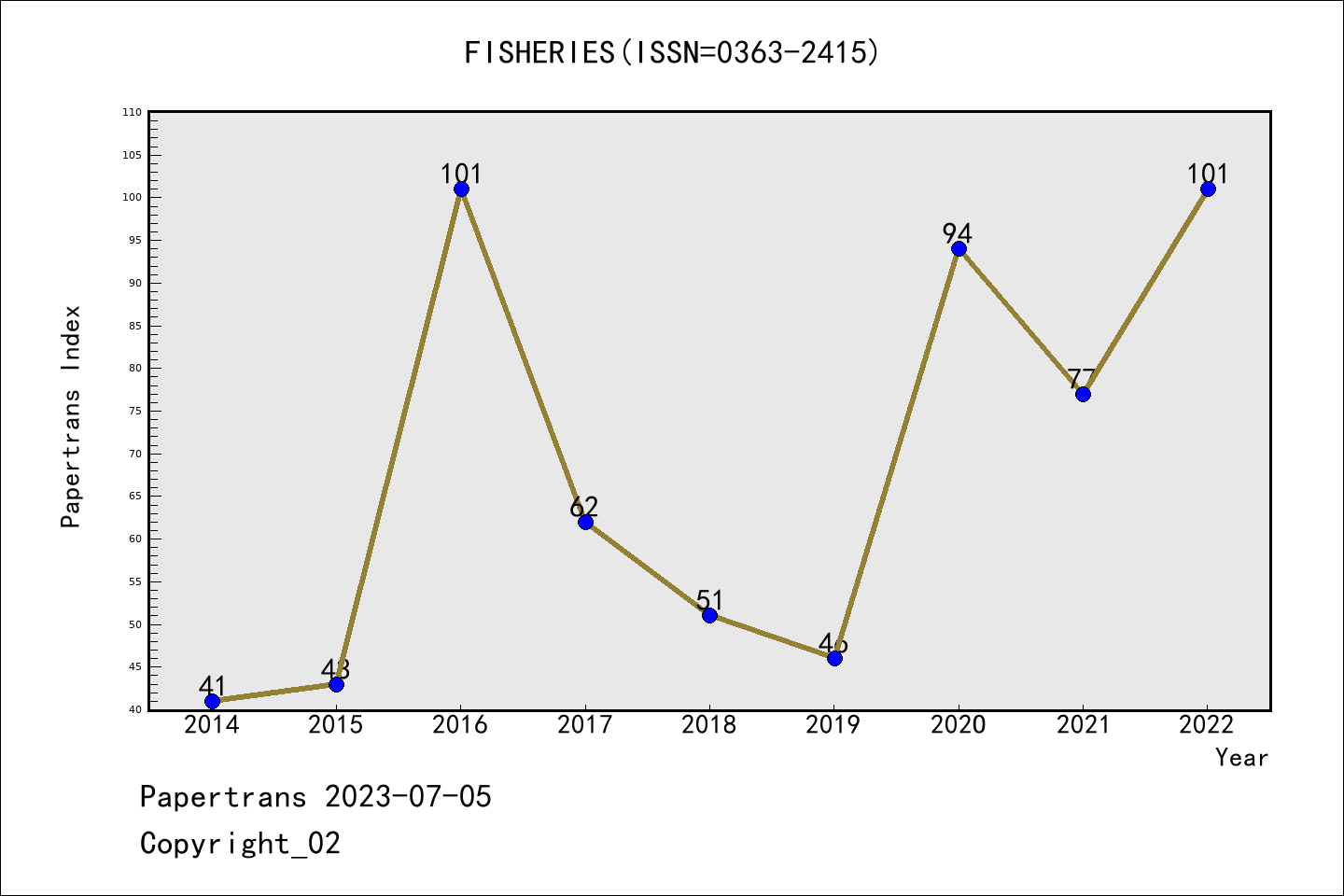 SCIE期刊FISHERIES历年派博系数(Pindex)