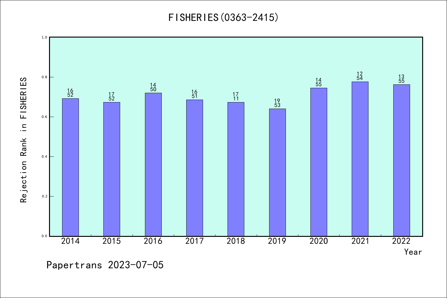 FISHERIES派博系数(Pindex)学科排名@SCIE渔业