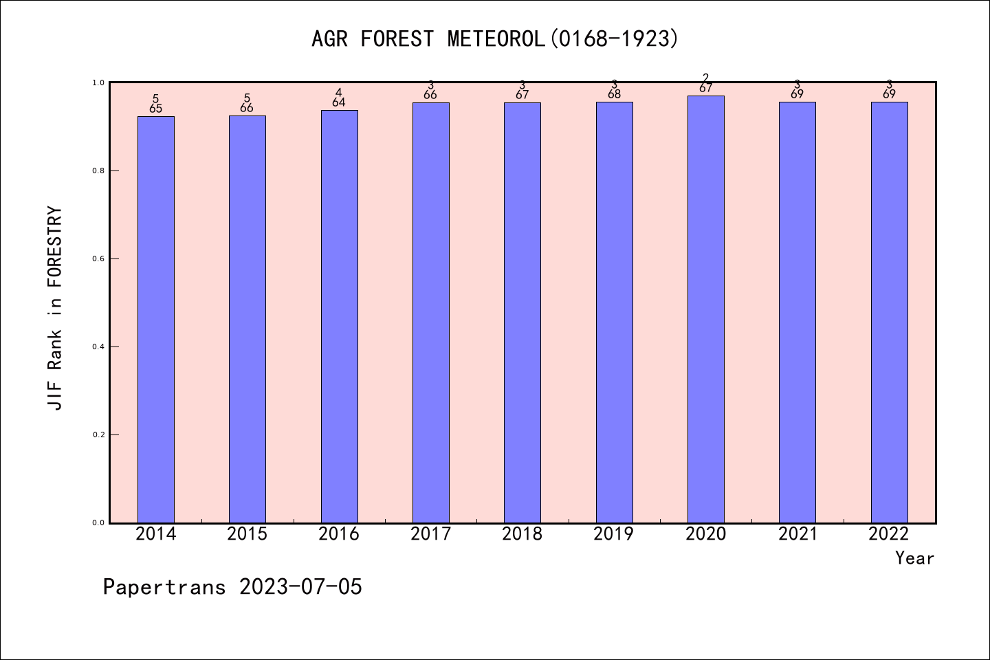 AGRICULTURAL AND FOREST METEOROLOGY拒稿率学科排名@SCIE林业