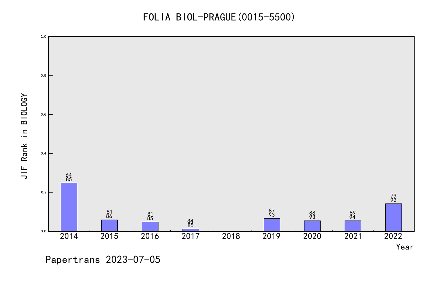 FOLIA BIOL-PRAGUE图表质量排名@SCIE生物学