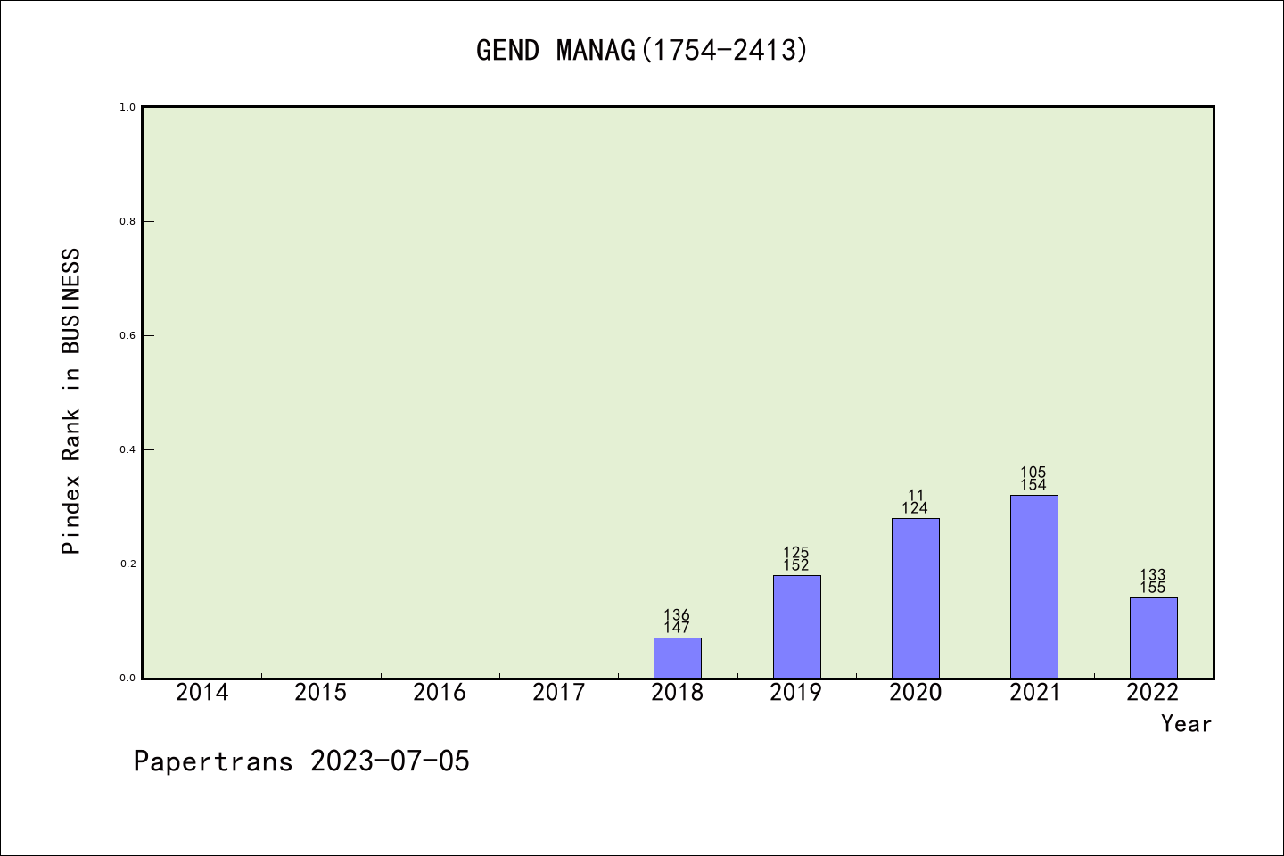 SSCI期刊Gender in Management历年派博系数(Pindex)