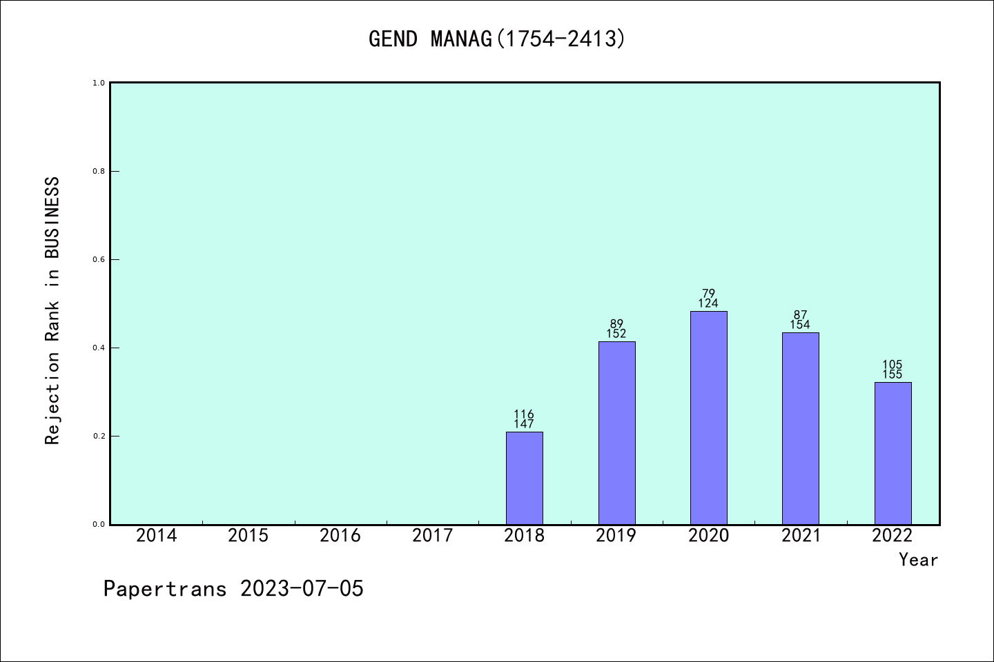 SSCI期刊Gender in Management历年拒稿占比