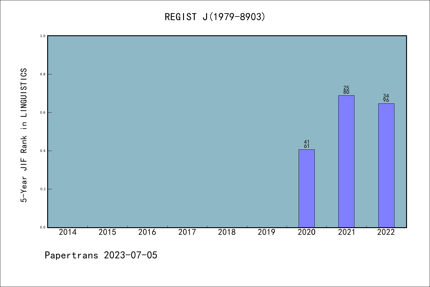 REGISTER Journal派博系数(Pindex)学科排名@ESCI语言学