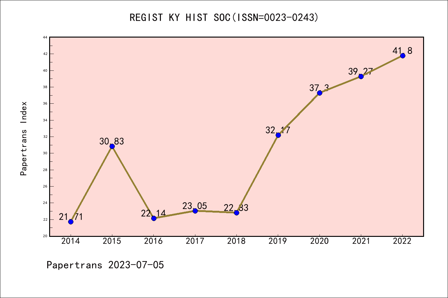 ESCI期刊Register of the Kentucky Historical Society历年派博系数(Pindex)