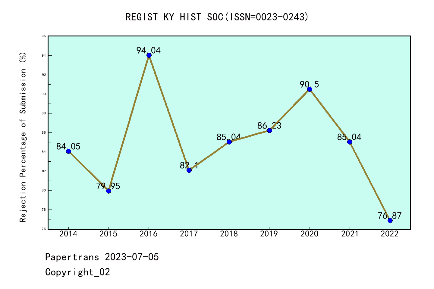 ESCI期刊Register of the Kentucky Historical Society历年拒稿占比
